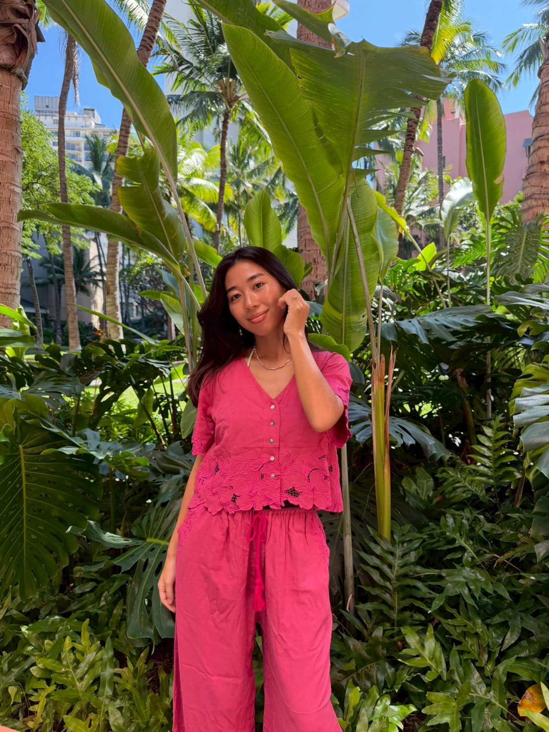この春夏注目のアイテム、leonaオリジナルのカットワーク半袖トップスをぜひお見逃しなく。